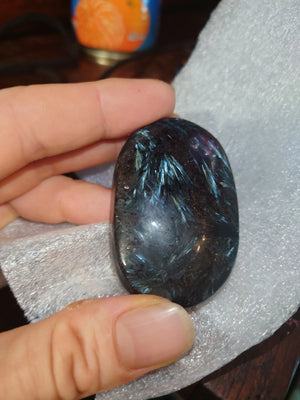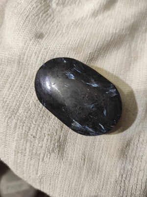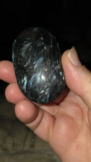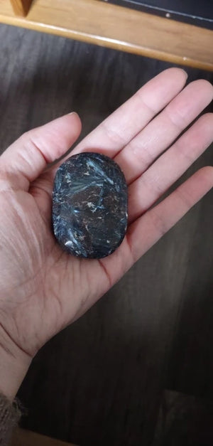 Carry an astrophyllite palm stone to calm nerves before meetings or workouts. Natural grounding energy helps reduce tension and steady breathing in high-pressure moments.
