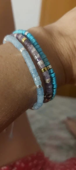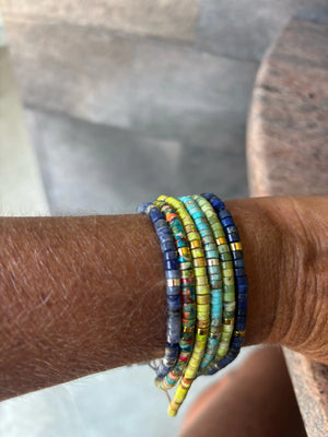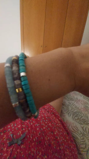 The beads are natural blue emperor stone polished for shine. Natural variation gives each bracelet a unique pattern, ensuring an authentic look and calming feel.
